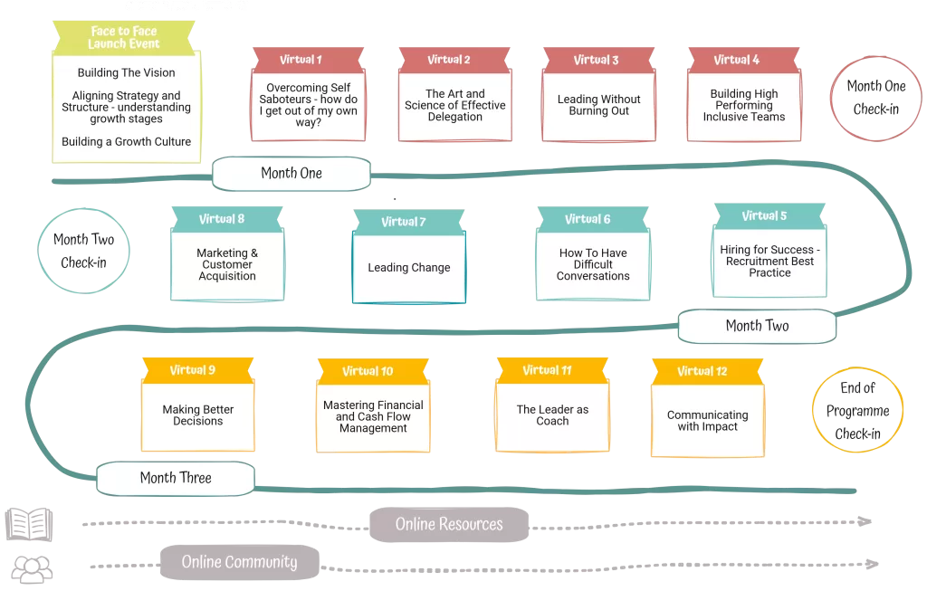 The programme runs over a three month period starting with an in-person launch event. The launch is followed by: